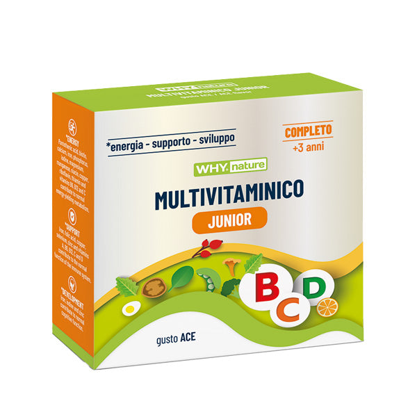 Multivitaminico Junior è un integratore alimentare multivitaminico e multiminerale completo, appositamente formulato per bambini dai 3 anni in su. La formulazione di Multivitaminico Junior fornisce una combinazione di vitamine e minerali essenziali ed è indicato nei casi di ridotto apporto con la dieta di tali sostanze o di aumento del loro fabbisogno fisiologico. Multivitaminico Junior offre una completa gamma di micronutrienti essenziali, contribuendo al mantenimento del normale metabolismo energetico e svolgendo ruoli chiave nelle reazioni biochimiche dell’organismo. La formulazione fornisce un prezioso supporto in periodi di elevato impegno fisico e mentale, ma anche durante i periodi di convalescenza, quando può risultare necessario integrare la normale dieta.